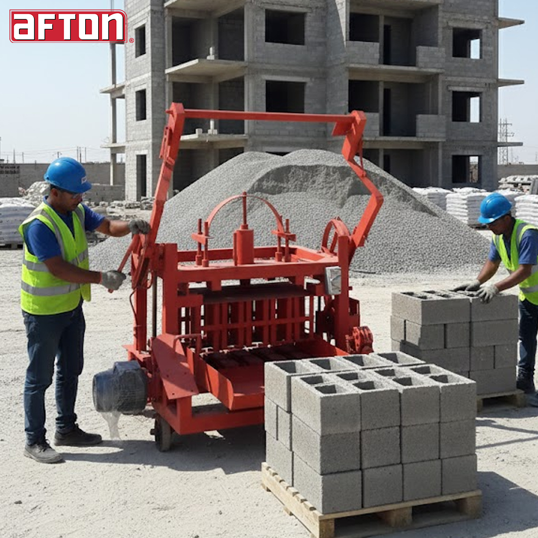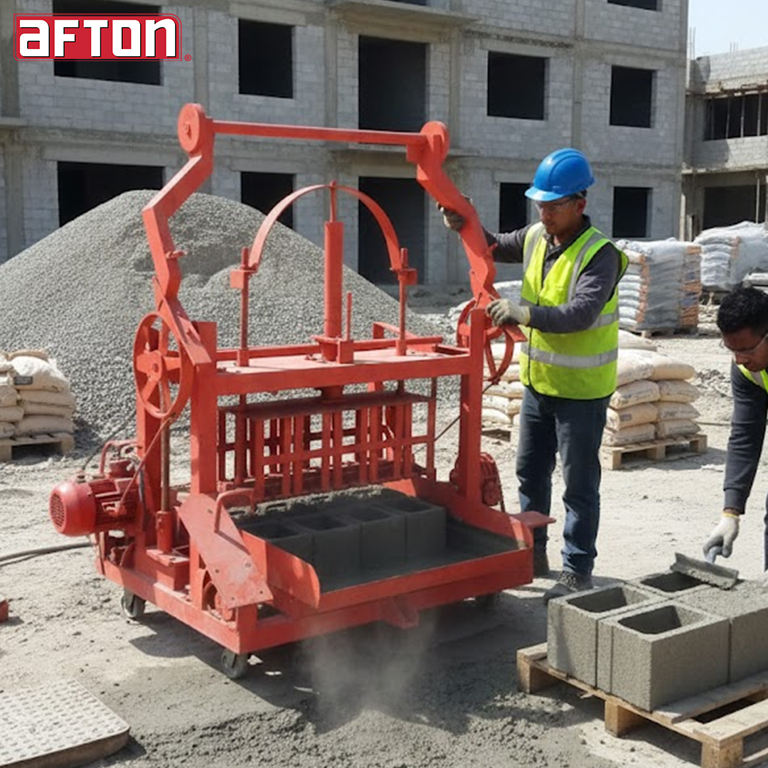 The Afton Block Machine is a robust and efficient concrete block-making unit designed for reliable performance on construction sites. Built with a heavy-duty frame and powered by a 4 HP Tri-Phase motor, it delivers consistent vibration and compact block production. The machine features manual loading, making it easy to operate and maintain. Available in both Single Motor and Double Motor versions, it offers flexibility based on production needs. The Double Motor model provides added efficiency by using 2 HP for travel and 2 HP for vibration, ensuring faster operation and stronger block compaction.